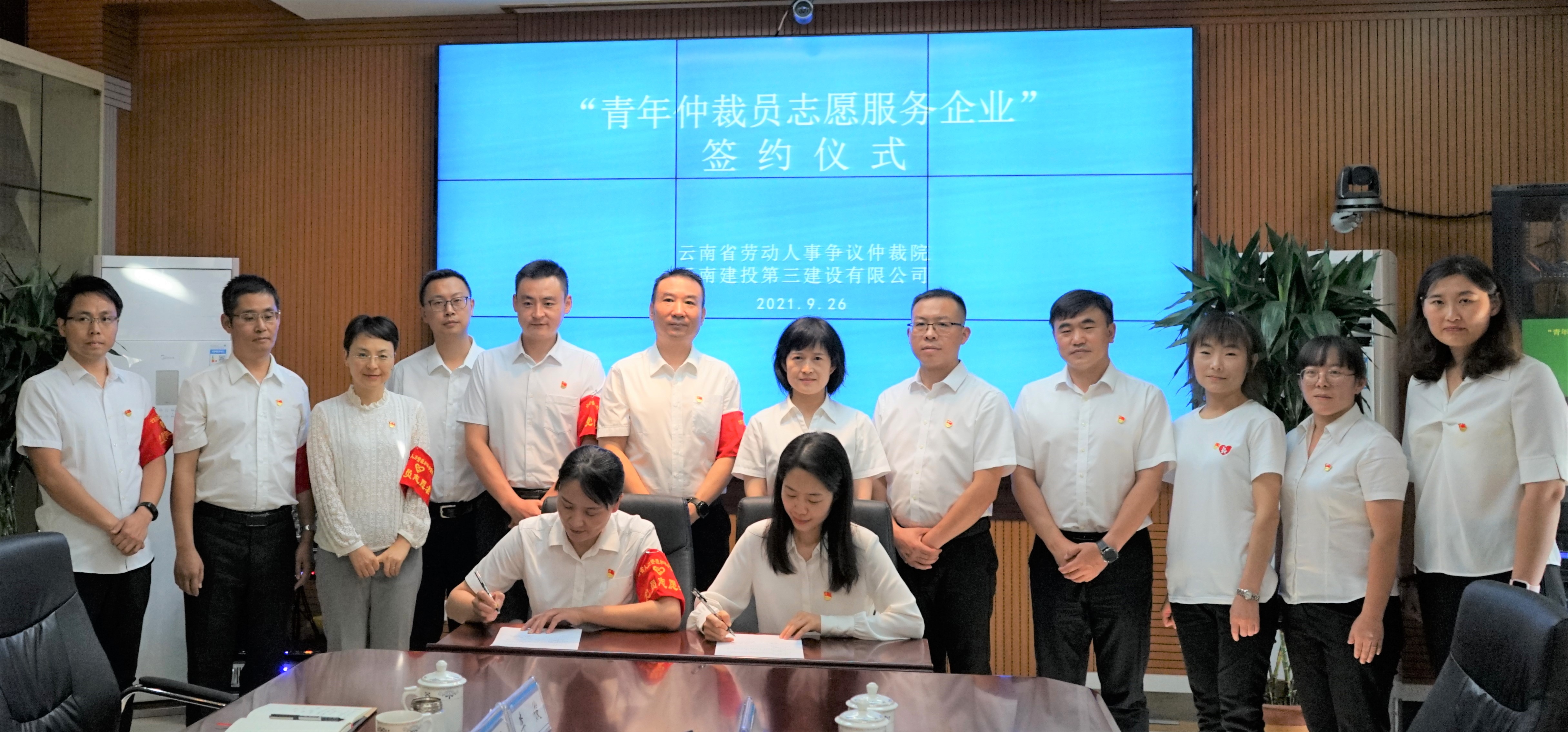 活動(dòng)最后,雙方代表簽訂了《青年仲裁員志愿者聯(lián)系企業(yè)服務(wù)協(xié)議書》并合影留念。