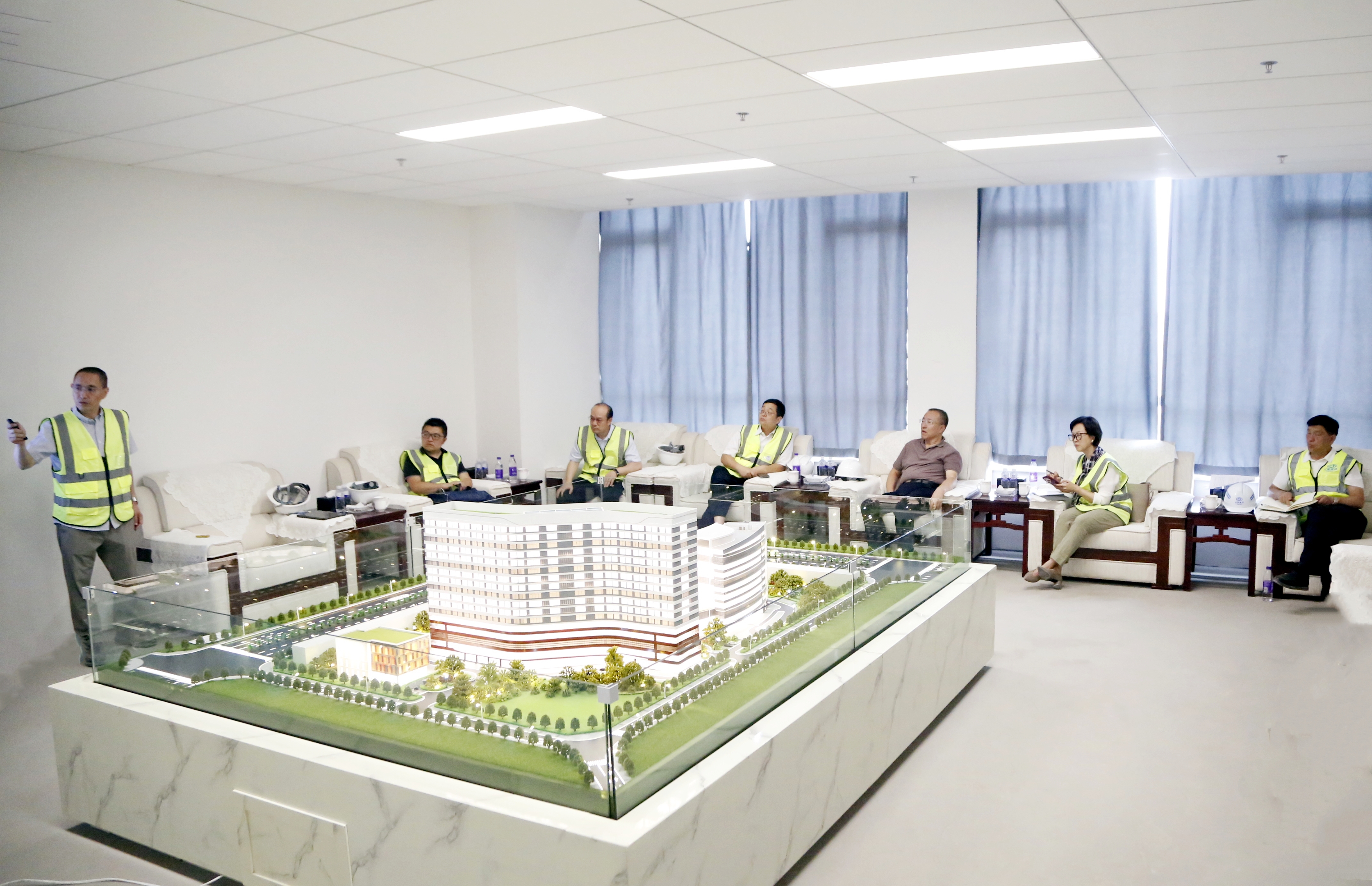 姜旭深入施工一線,實地察看門診醫(yī)技樓、住院樓精裝修樣板區(qū),認真聽取項目負責(zé)人關(guān)于整體規(guī)劃、資金使用、后續(xù)施工等方面的匯報,對項目主體外觀設(shè)計表示贊許。姜旭強調(diào),婦幼健康是全民健康的基石,各相關(guān)單位要切實把項目建設(shè)好、管理好,在保證質(zhì)量和安全的前提下,科學(xué)調(diào)配資源,優(yōu)化施工流程,加快項目建設(shè)進度,力爭早日投入使用;要注重完善功能,結(jié)合婦幼健康服務(wù)特點,進一步優(yōu)化科室布局和服務(wù)流程,完善配套設(shè)施建設(shè),為婦女兒童提供舒適、溫馨的就醫(yī)環(huán)境;要加強資金管理,確保每一筆資金都用在“刀刃上”,并爭取多方資金支持,為項目順利推進提供堅實資金保障。